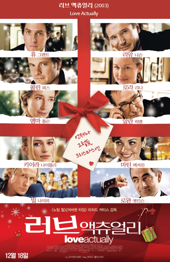 특히 러브액츄얼리의 OST들은 아직까지도 많은 사랑을 받고 있는데요. 눈 오는 날이면 늘 생각나는 영화에요!